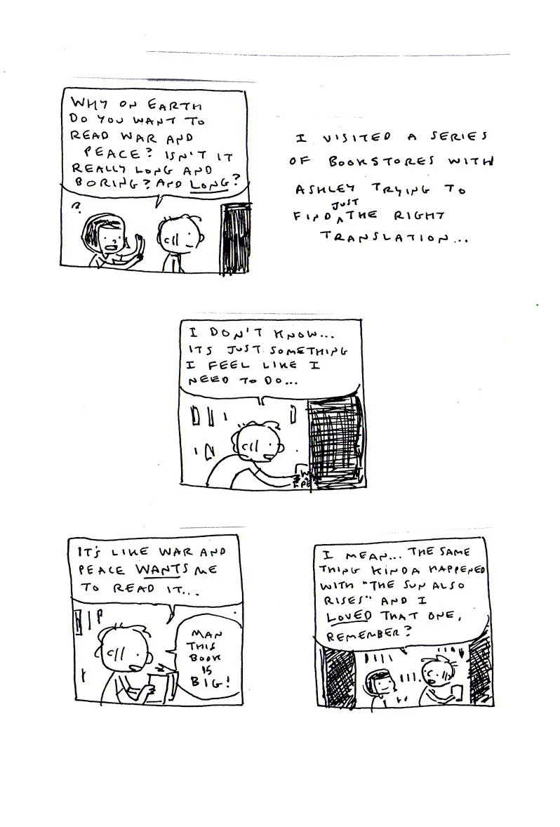 An in-progress comic begun in 2009, which chronicles my attempt to read Tolstoy’s classic "War and Peace"